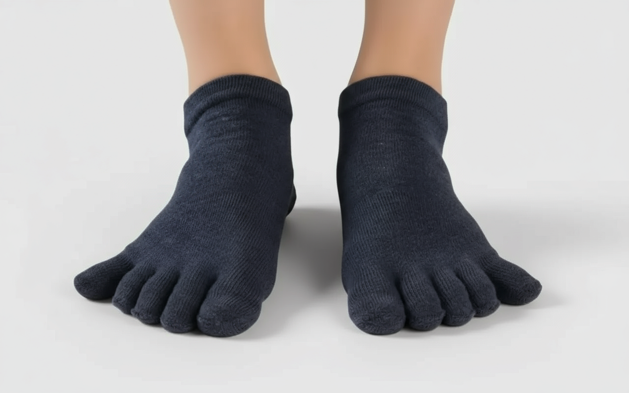 كل إصبع يبقى منفصلاً، مما يمنع الاحتكاك والتهيج. هذا التصميم يدعم الحركة الصحيحة ويمنع تراكم العرق.