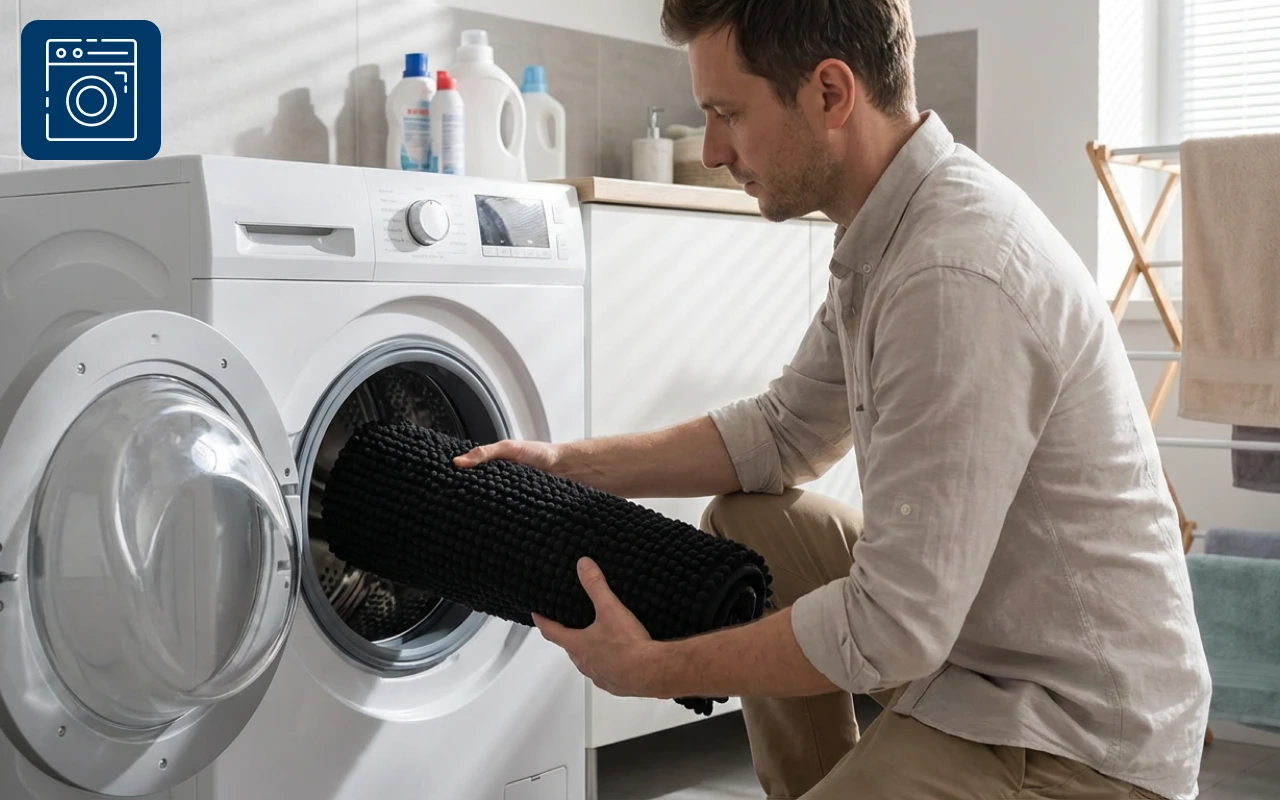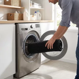 ضع السجادة مباشرة في الغسالة لإنعاش سريع. تخرج نظيفة وجاهزة للاستخدام خلال دقائق.