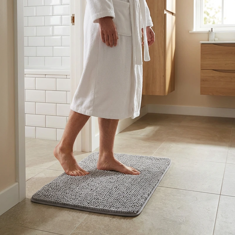 الظهر المطاطي يبقي كل شيء ثابت في مكانه بدون انزلاق. يمكن للجميع الدخول بأمان، حتى عند الاستعجال.