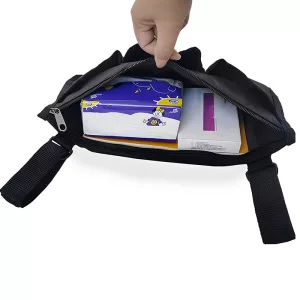 حقيبة الكرسي المتحرك من Ortorex تثبت بإحكام وتبقى في مكانها. الجيوب المتعددة تُبقي الأشياء مرتبة وسهلة المنال. الشريط العاكس يعزز الرؤية للسلامة ليلاً.