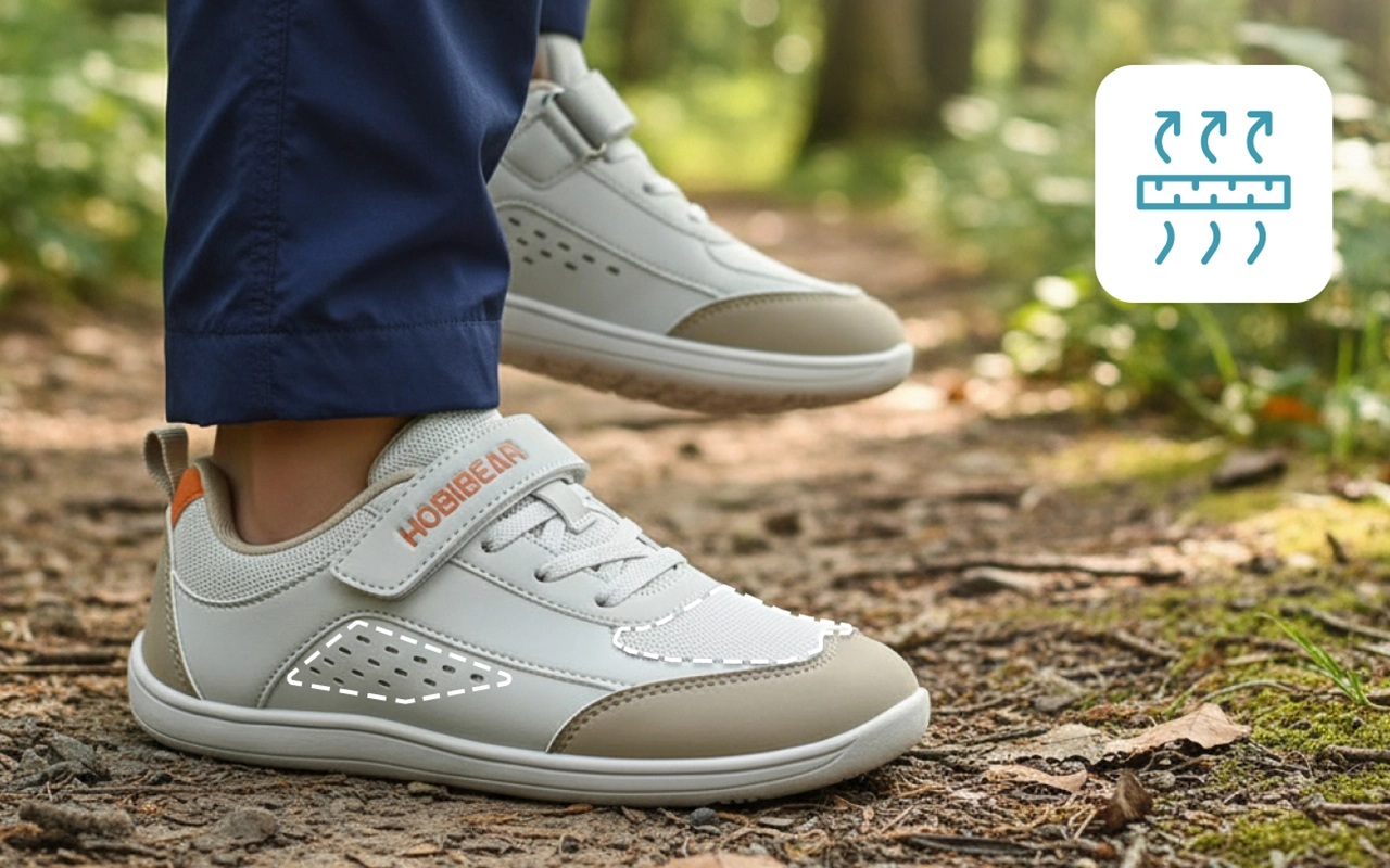 تبقى أقدام الأطفال مسترخية دائماً لأن الأصابع لا تشعر بالضيق. الانتشار الطبيعي يعزز التوازن والراحة على أي سطح.