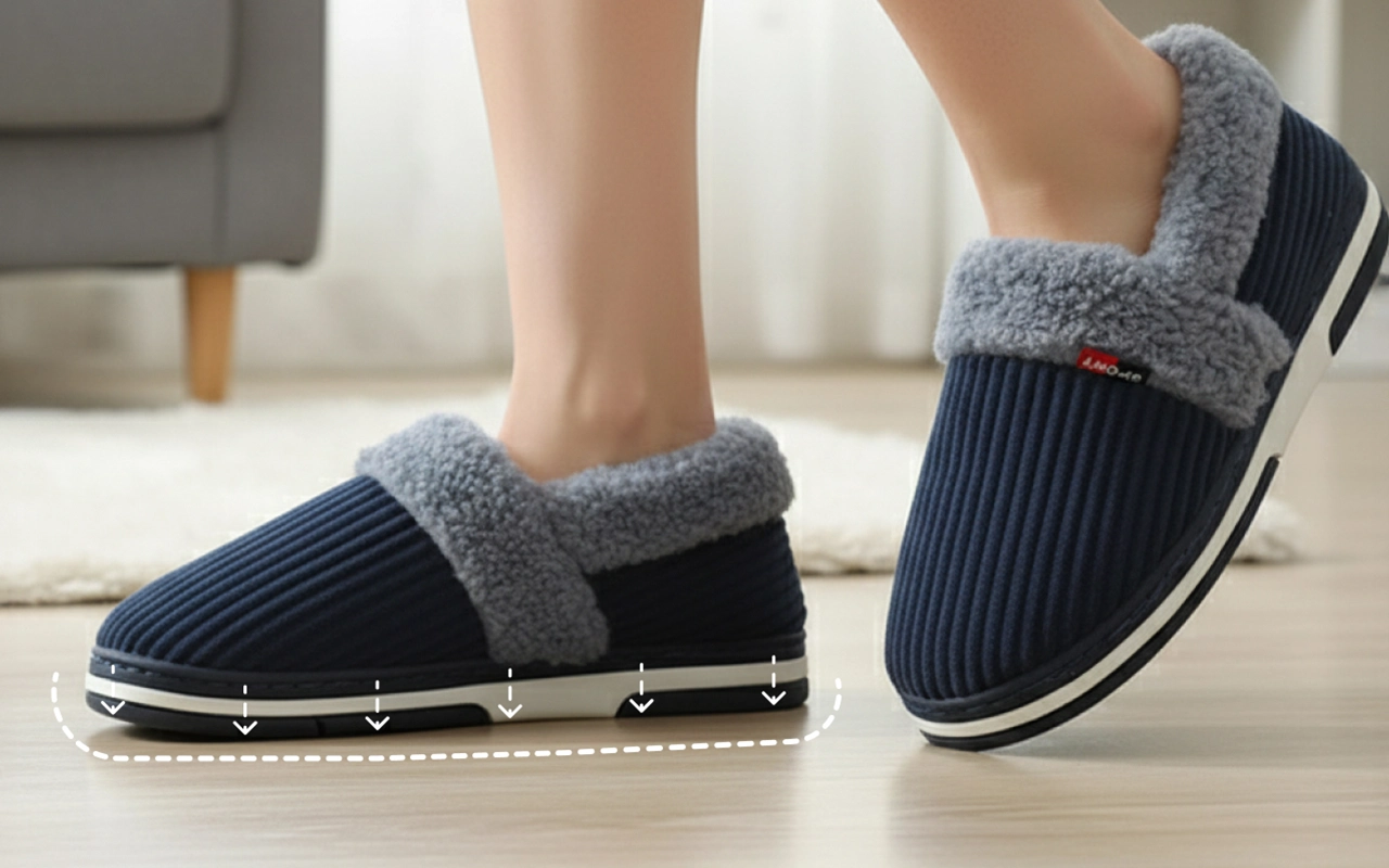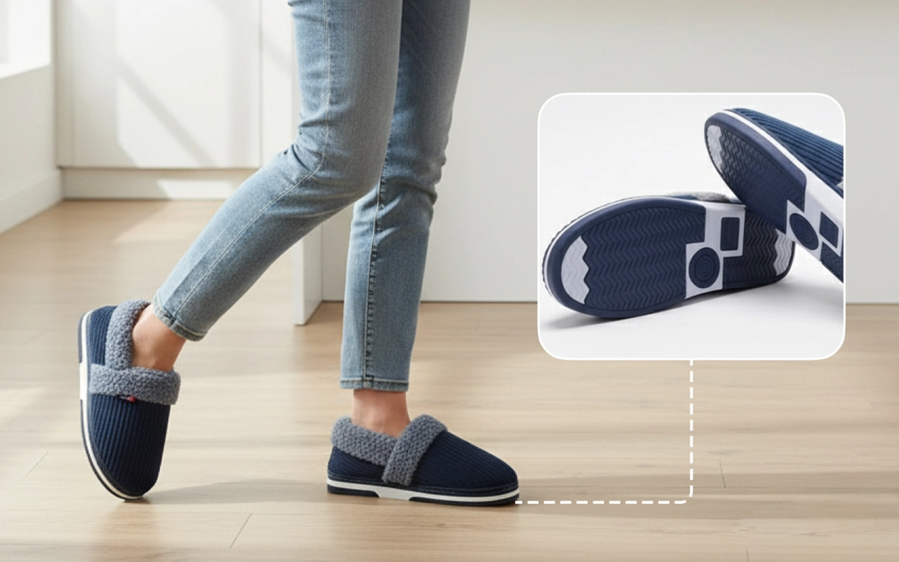 النعل الناعم يمتص كل خطوة ويسهل السير على الأسطح الصلبة. تنقل في منزلك براحة وجهد أقل.