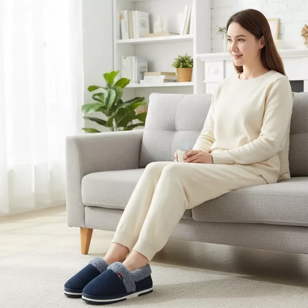 هذه الشبشب مناسبة تمامًا للأمسيات الباردة. الداخل ناعم للغاية والنعل غير القابل للانزلاق يجعلني أشعر بالأمان. وتبدو جميلة مع البيجاما أيضاً.
