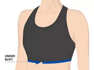 - 2. لقياس محيط تحت الصدر، لفي شريط القياس حول قفصك الصدري مباشرة وبشكل متساوٍ تحت صدرك.