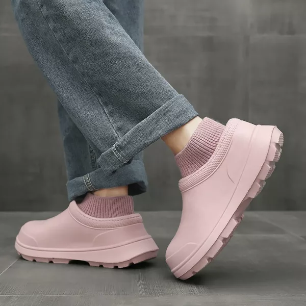 هذه الأحذية سهلة الارتداء مثالية للأيام الممطرة. التصميم المقاوم للم يحافظ على قدمي جافة، والدعم المبطن هو بالضبط ما أحتاجه للراحة طوال اليوم.