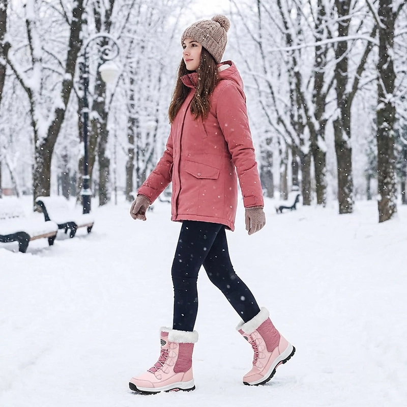 هذه الأحذية الثلجية دافئة جدًا! لم أنزلق أبدًا أثناء حمل البقالة، ومقاومة الماء مذهلة حتى بعد ساعات في الثلج.