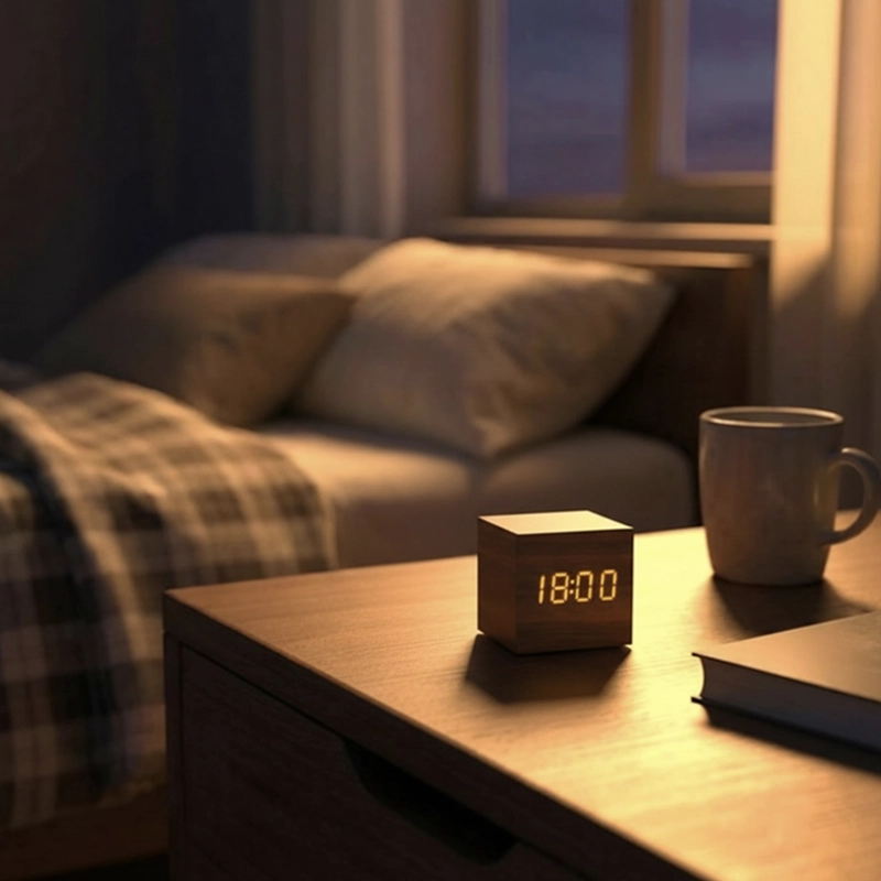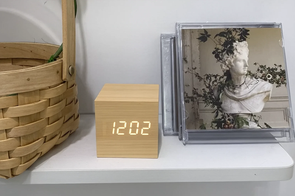 لم أعد بحاجة لهاتفي للمنبهات بعد الآن. مكعب الخشب موثوق ويحافظ على ترتيب المساحة. سهل جدًا في الإعداد.