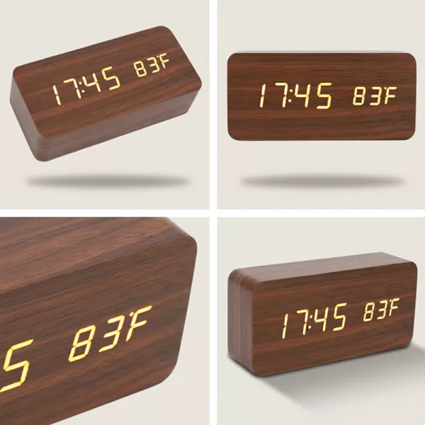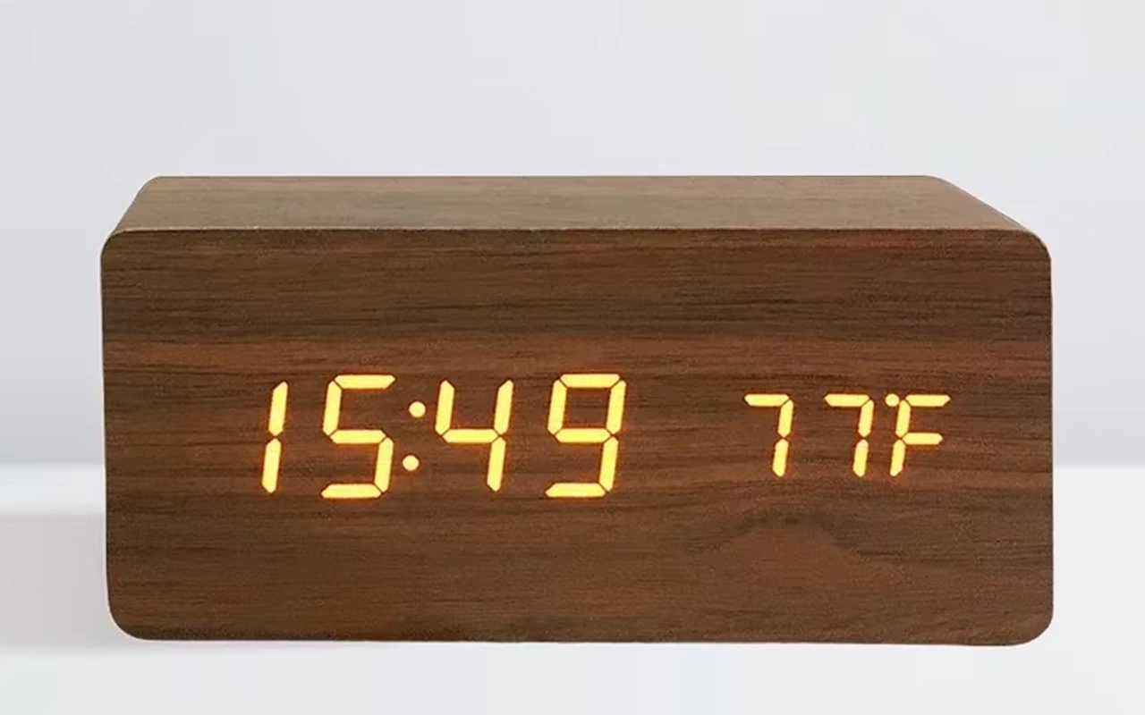 وجود ثلاث منبهات رائع لعائلتي! كل شخص يستخدم واحدة ولم نعد نفوت جداولنا الآن. ومظهر الخشب جميل أيضًا.