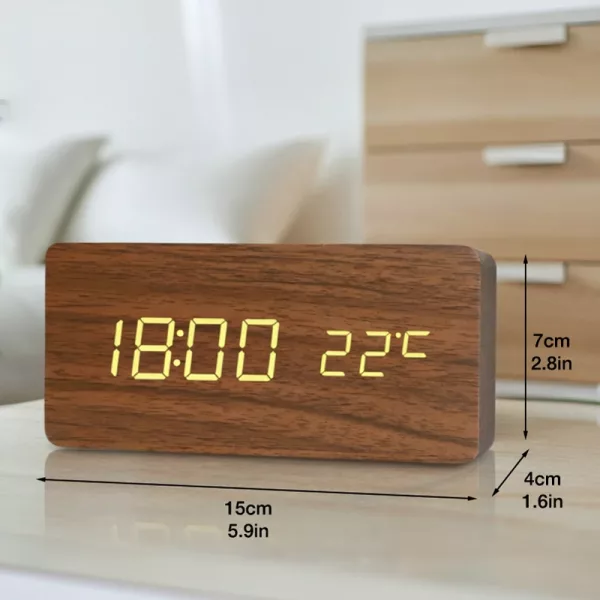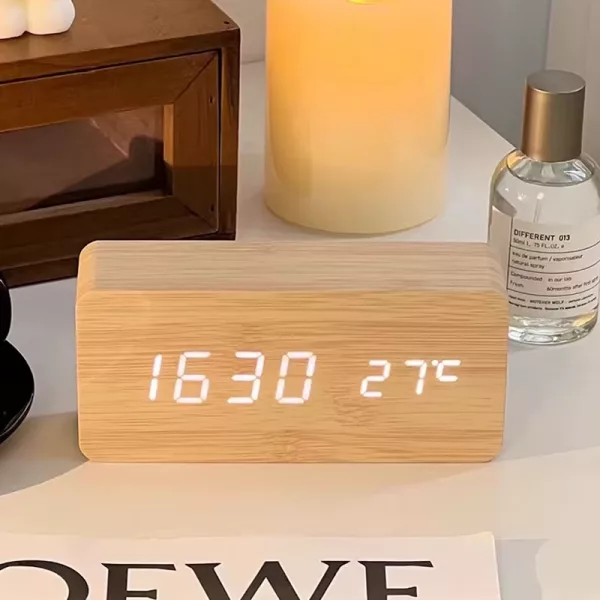 أحب أنني أستطيع رؤية الوقت ودرجة الحرارة بنظرة واحدة صباحًا! التصميم الخشبي يناسب الرف لدي تمامًا.