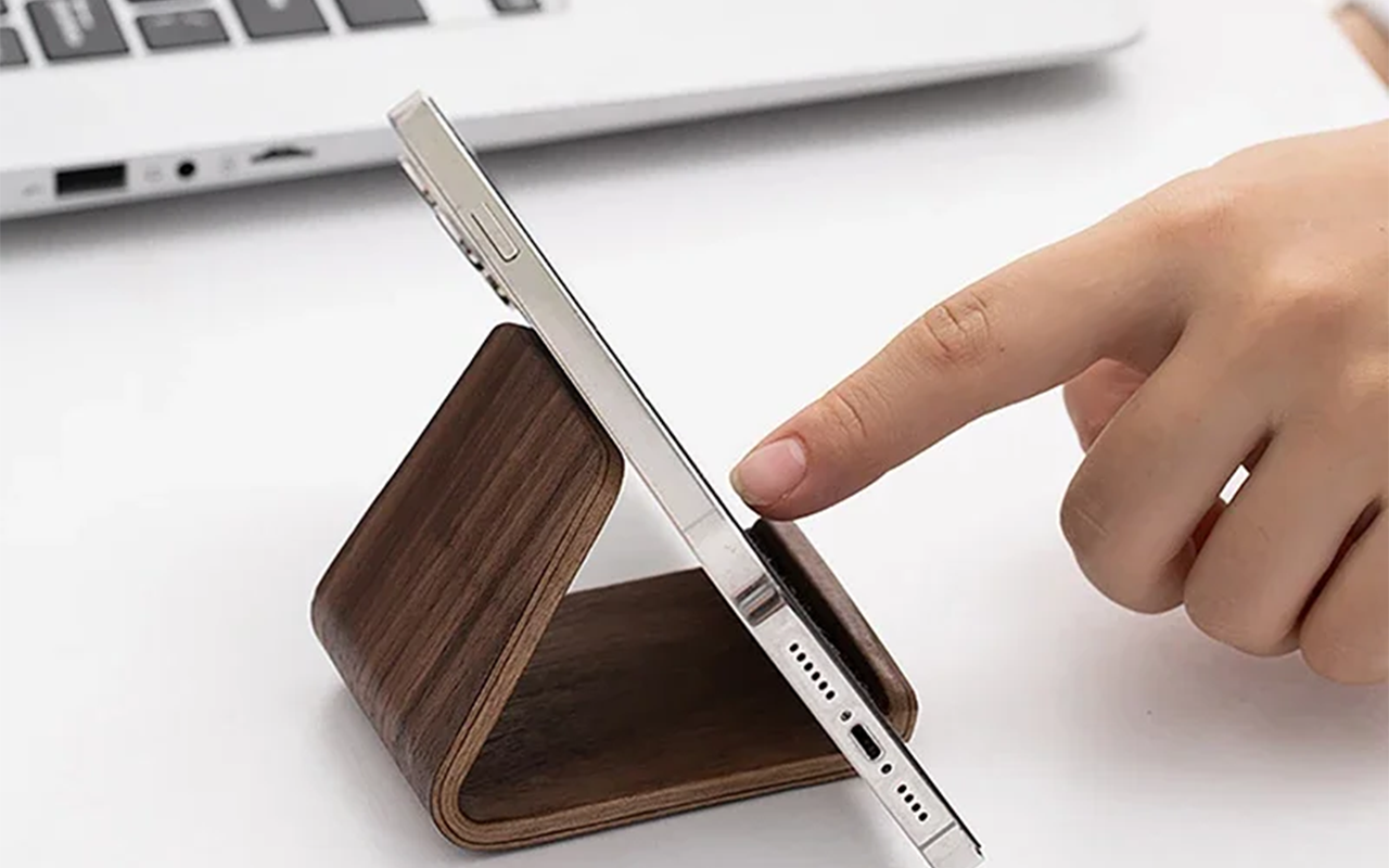 شيء بسيط كهذا يجعل مكتبي يبدو أفضل بكثير. أحب كيف أن الحامل الخشبي لا ينزلق ويحافظ على ثبات هاتفي.
