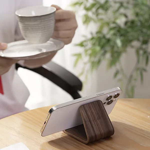 شيء بسيط كهذا يجعل مكتبي يبدو أفضل بكثير. أحب كيف أن الحامل الخشبي لا ينزلق ويحافظ على ثبات هاتفي.