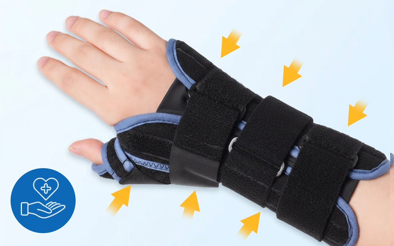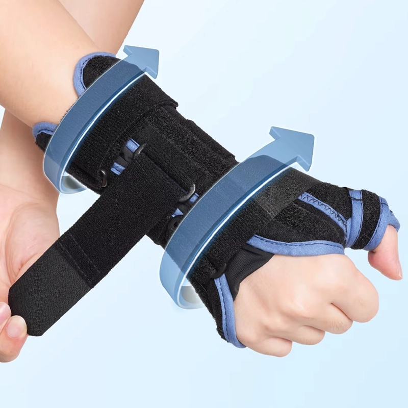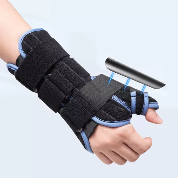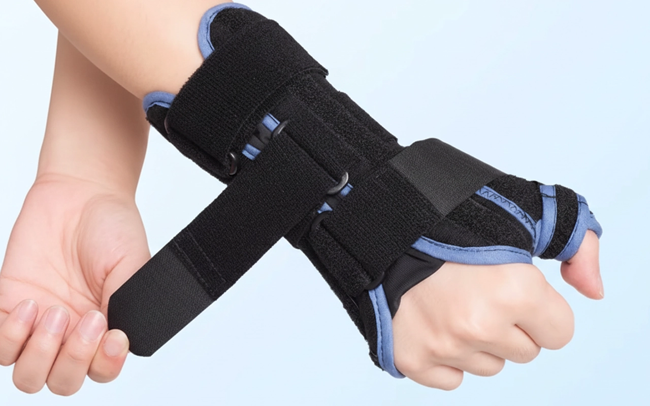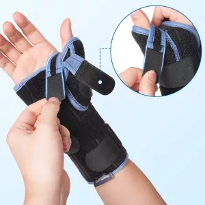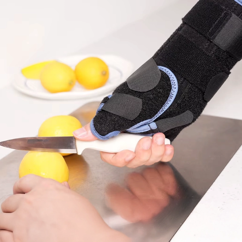 جربت دعامات أخرى، لكن هذه لا تضغط يدي بطريقة غريبة. تثبيت الأشرطة سهل، وإبهامي يشعر بالدعم. شكلها بسيط لكنها فعالة جداً.