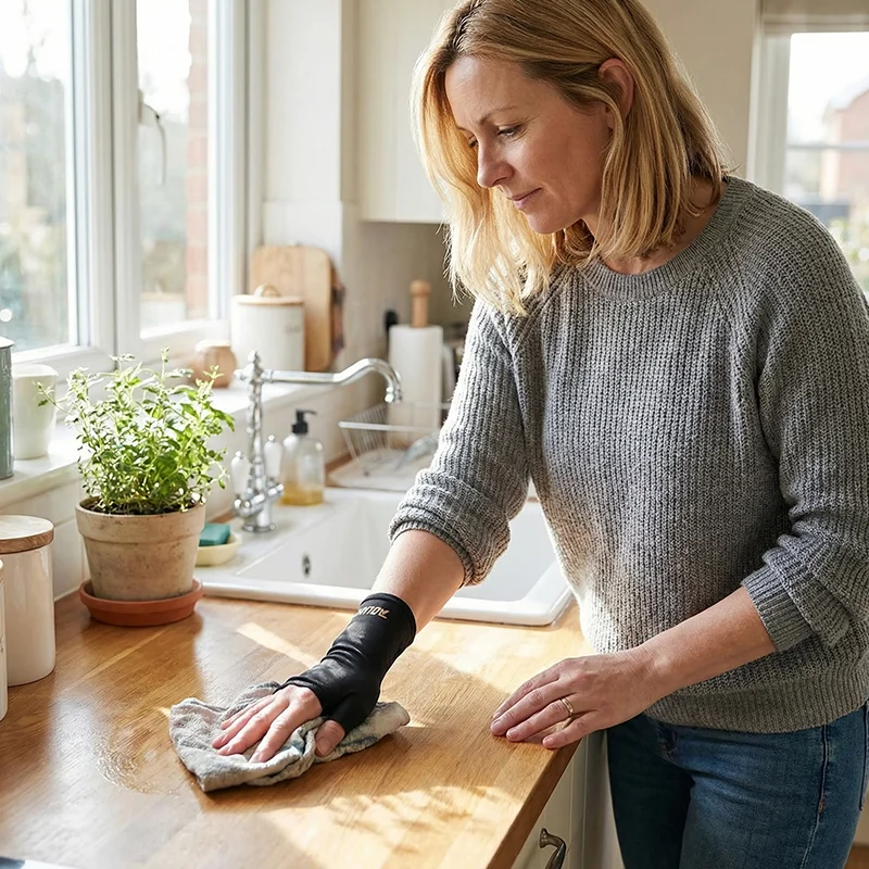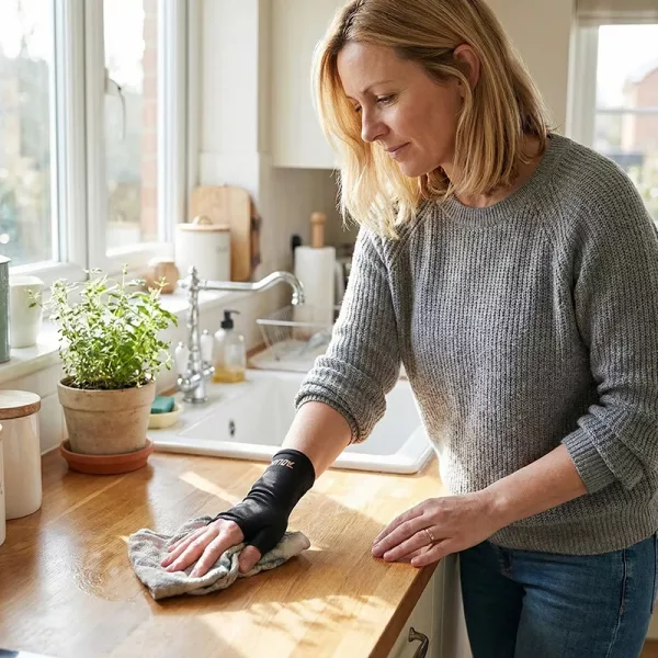 أحتفظ بهذا رباط المعصم على مكتبي. عندما يبدأ يدي في الأَلم، جلسة دافئة سريعة ترخي كل شيء والقماش يبقى مريحًا لساعات.